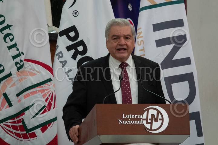 Ernesto Prieto Ortega durante la conferencia de prensa donde se expusieron los resultado del sorte del avión presidencial.
