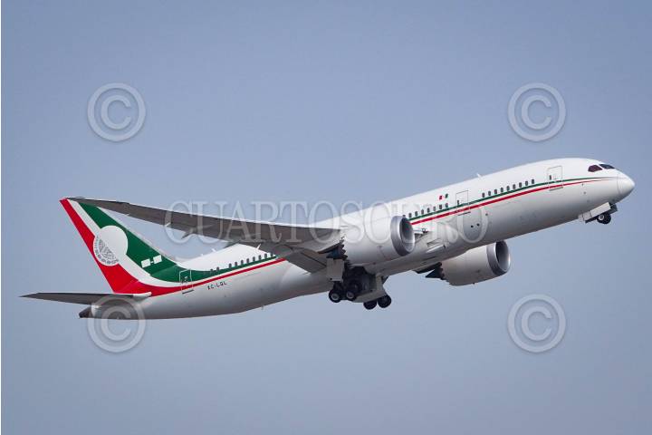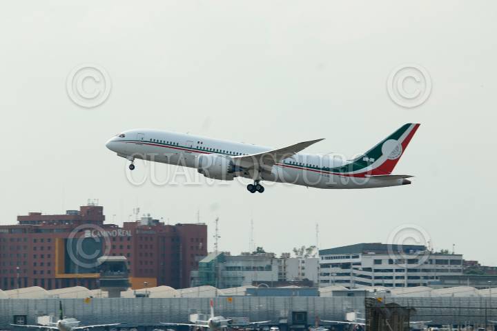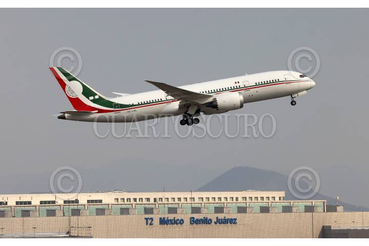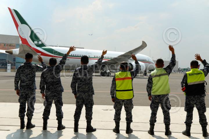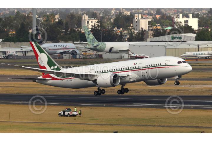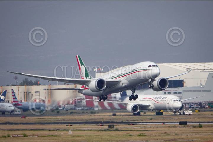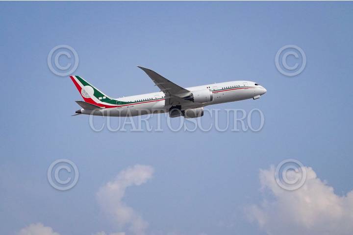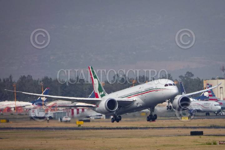 Aspectos del avión presidencial en el AICM y su despegue luego de ser vendido a Tayikistán.