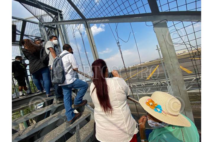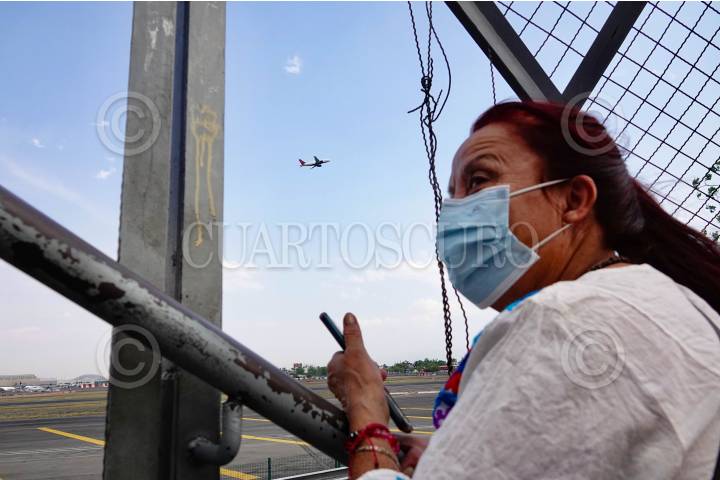 Capitalinos durante la espera del despegue del avión presidencial en el AICM