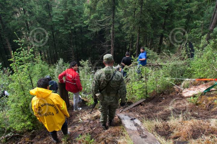 XALATLACO, ESTADO DE MÉXICO, 28MAYO2010.- Dos personas perdieron la vida tras desplomarse una avioneta tipo Cesna con matrícula XBXTX, en la sierra de Xalatlaco, dicha avioneta salio del aeropuerto internacional de Toluca. Al lugar elementos del ejercito, policia estatal y municipal acordonaron la zona del desastre. FOTO: SAÚL LÓPEZ/CUARTOSCURO.COM