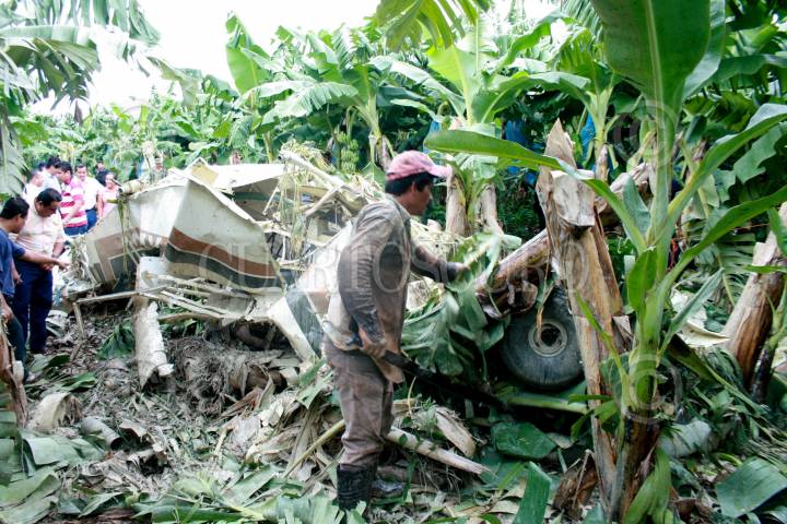 CUNDUACÁN, TABASCO, 02JULIO2011.- Una trágica muerte encontró el piloto de una avioneta, luego que al parecer por fallas mecánicas ésta se desplomó cuando realizaba labores de fumigación en unas plantaciones de plátano localizadas en la ranchería Cucuyulapa segunda sección de este municipio. La descripción de la aeronave tipo Cessna con matrícula BX-CCU, al parecer propiedad del pilote de nombre José Felix Us Bobadilla, había caído entre unas plantaciones de plátano de esa comunidad. FOTO: MARCO POLO GUZMÁN HERNÁNDEZ/CUARTOSCURO.COM