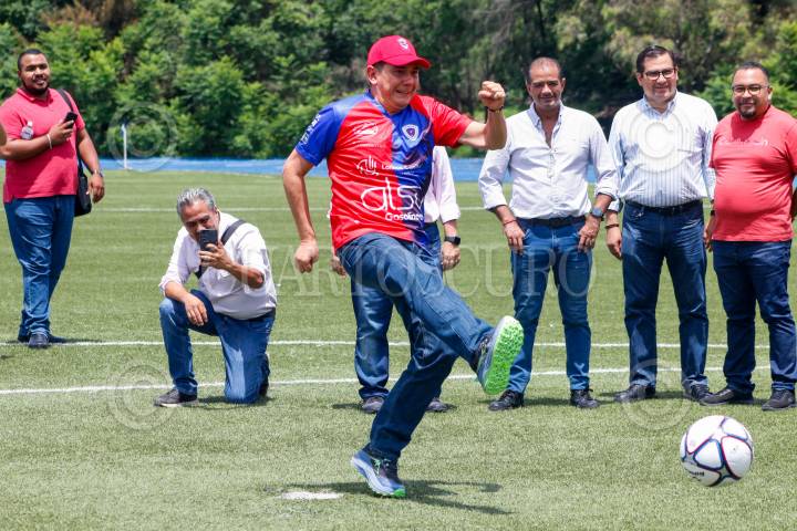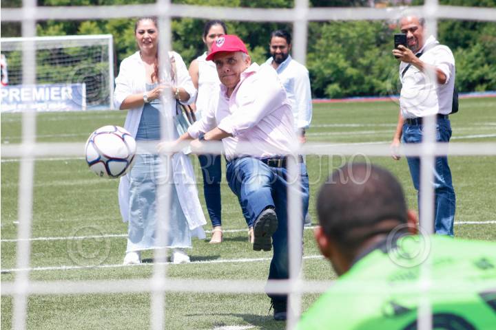 CHILPANCINGO, GUERRERO, 14SEPTIEMBRE2024.- El presidente municipal de Chilpancingo Alejandro Arcos Catalán cobró un tiro penal para dar el arranque de temporada de los Avispones de Chilpancingo que debutarán como locales en la Liga Premier Serie A, categoría donde es el único equipo del estado de Guerrero que participa en este circuito del balompié mexicano. El partido termino en empate a 1 y los Avispones de Chilpancingo sumaron su segundo empate consecutivo, logrando rescatar 2 puntos de los 6 que se han disputado en dos jornadas en la Temporada 2024-2025 de la Liga Premier Serie A. FOTO: DASSAEV TÉLLEZ ADAME/CUARTOSCURO.COM