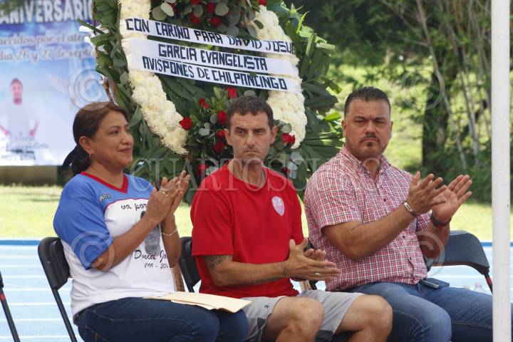 CHILPANCINGO, GUERRERO, 30SEPTIEMBRE2024.- El pasado 26 de septiembre del 2014, los jugadores del Club 'Avispones' de Chilpancingo, sufrieron el ataque de hombres armados que los confundieron con normalistas de Ayotzinapa, asesinando a dos miembros del equipo, además de herir a más de 15 jugadores. Este 30 de septiembre, la mamá del jugador de 15 años David Josué 'Zurdito' García Evangelista, junto a familiares de Víctor Manuel 'Barcel' Lugo Ortiz, jugadores del club, ex jugadores y familiares de víctimas del atentado, conmemoraron los 10 años de estos lamentables hechos que dejaran a 43 estudiantes de la Escuela Normal Rural 'Raúl Isidro Burgos' de Ayotzinapa, además de 6 personas sin vida. Durante su discurso, la Señora Roberta García Evangelista, indicó que a 10 años de los hechos, nunca fue esclarecido el ataque hacia el equipo, ya que lo único que les dijeron es que "fueron confundidos", a pesar de que el camión en el que viajaban los jugadores es más pequeño que los comerciales y los rótulos qué traía eran de la empresa que se los rentaba, además de contar con una lona al frente, para una mayor identificación. FOTO: DASSAEV TÉLLEZ ADAME/CUARTOSCURO.COM