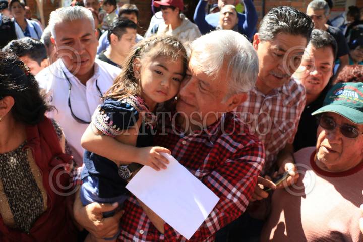 AYAPANGO, ESTADO DE MÉXICO, 26ENERO2017.- Andrés Manuel López Obrador acompañado de Delfina Gómez Álvarez, candidata de Morena a la gubernatura del Estado de México, visitaron el municipio de Ayapango, el líder de Morena durante su discurso crítico la postura del presiente de Estado de Estados Unidos, Donad Trump, ante el mensaje que mando por twitter para llevar acabo la construcción de muro fronterizo. FOTO: SAÚL LÓPEZ /CUARTOSCURO.COM