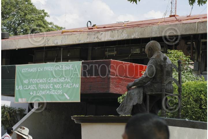 IGUALA, GUERRERO, 16DICIEMBRE2014.- En la explanada del ayuntamiento Igualteco, profesores de la CETEG y de la CNTE, tienen fotografías y leyendas en exigencias de la presentación con vida de los estudiantes de Ayotzinapa. FOTOS: JOSÉ I. HERNÁNDEZ /CUARTOSCURO.COM