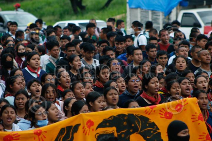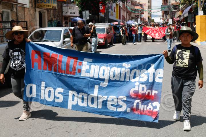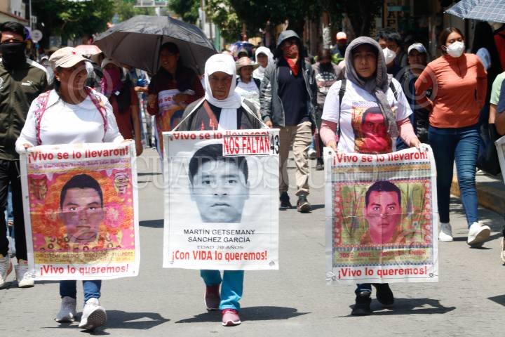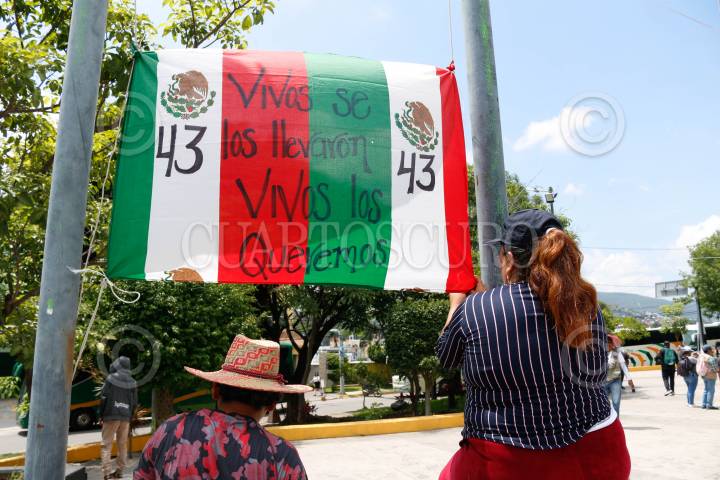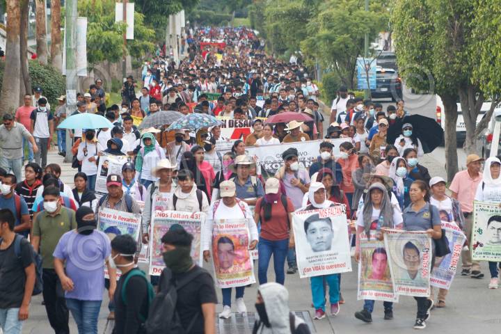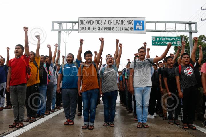 CHILPANCINGO, GUERRERO, 18SEPTIEMBRE2024.- En protesta por la falta de cumplimiento de las promesas del Gobierno Federal, en respecto a la localización de los desaparecidos, padres de familia de los 43 y cientos de manifestantes, marcharon en Chilpancingo y bloquearon la Autopista del Sol, en el punto conocido como Parador del Marqués. A una semana del décimo aniversario por la desaparición de los 43, se llevó a cabo una movilización estatal, para exigir justicia por las víctimas y recriminar el proteccionismo del presidente de México, Andrés Manuel López Obrador, a las Fuerzas Armadas. Minutos después de las 12 del mediodía, cientos de normalistas de Ayotzinapa y de la Federación de Estudiantes Campesinos Socialistas de México (FECSM), así como alumnos de las tres normales públicas de Chilpancingo, partieron en marcha desde el monumento a Nicolás Bravo, al norte de la ciudad. A las actividades de protestas se sumaron organizaciones sociales y colectivos de desaparecidos como el colectivo Lupita Rodríguez y el Centro de Derechos Humanos de las Víctimas de la Violencia “Minerva Bello”, qué manifestaron apoyo a los padres de los 43, por la falta de justicia. FOTO: DASSAEV TÉLLEZ ADAME/CUARTOSCURO.COM
