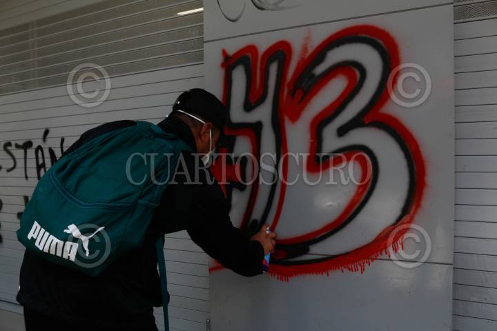 Mujeres y hombres del bloque Negro fueron encapsulados durante la manifestación por los 6 años dela desaparición de los 43 normalistas de Ayotzinapa, impidiéndole la llegada al Zócalo Capitalino