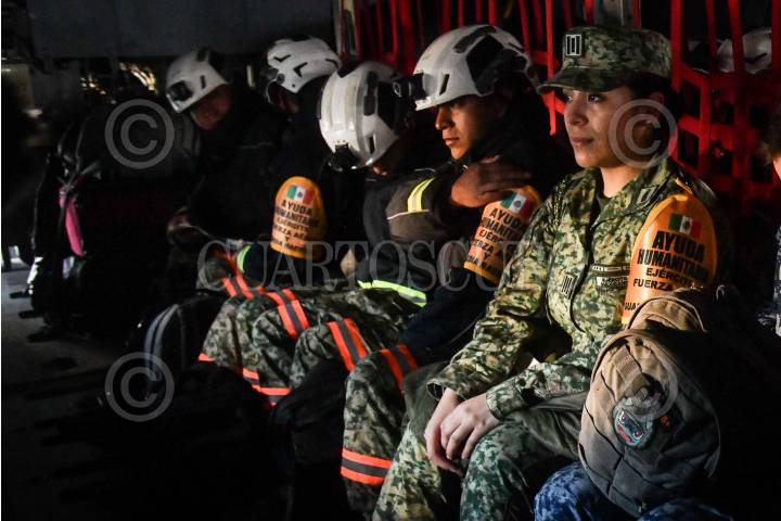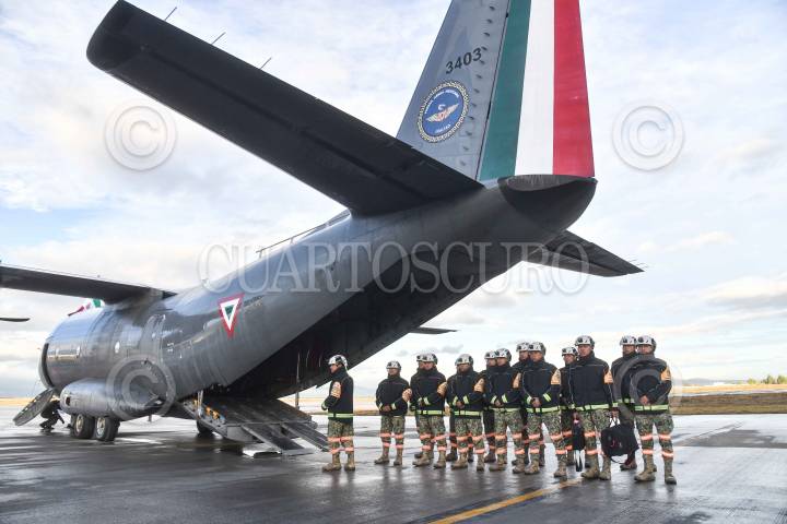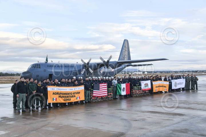 ZUMPANGO, ESTADO DE MÉXICO, 11ENERO2025.- Integrantes de la Secretaría de la Defensa Nacional (Sedena) salieron en los aviones Spartan (F.A.M 3403) y Hércules (F.A.M. 3611), de la base aérea militar número 1 para prestar ayuda humanitaria en los incendios que prevalecen en Los Ángeles. Estuvo presente Laura Velázquez, coordinadora nacional de Protección Civil. FOTO: MARIO JASSO/CUARTOSCURO.COM