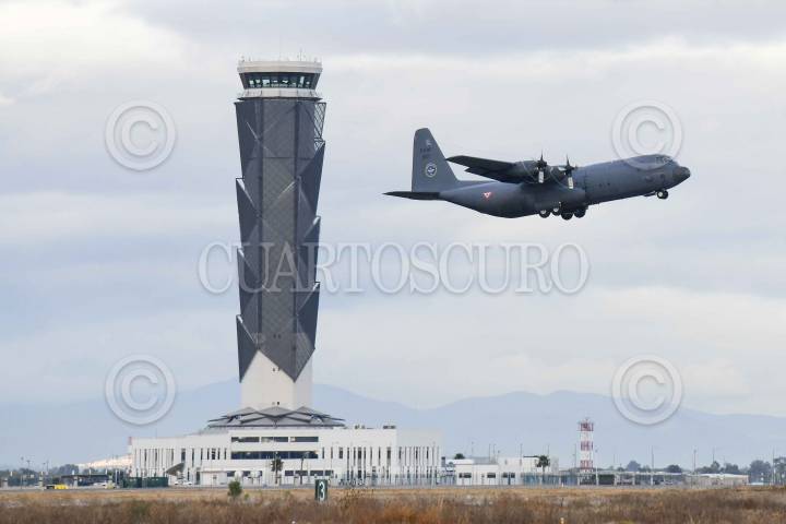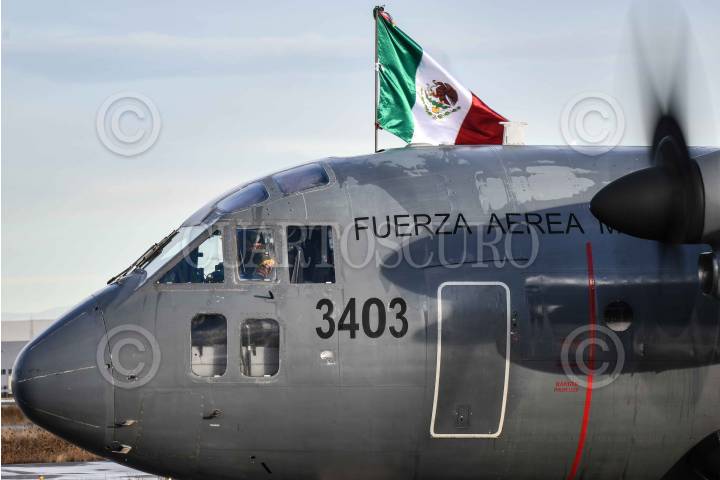 ZUMPANGO, ESTADO DE MÉXICO, 11ENERO2025.- Integrantes de la Secretaría de la Defensa Nacional (Sedena) salieron en los aviones Spartan (F.A.M 3403) y Hércules (F.A.M. 3611), de la base aérea militar número 1 para prestar ayuda humanitaria en los incendios que prevalecen en Los Ángeles. FOTO: MARIO JASSO/CUARTOSCURO.COM