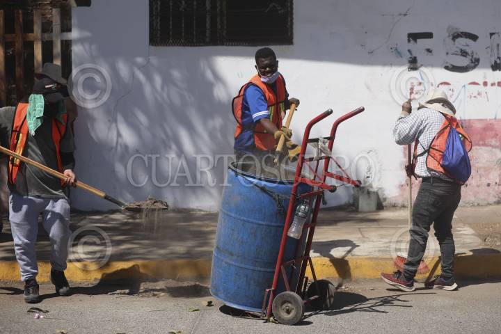 TAPACHULA, CHIAPAS, 04FEBRERO2025.- Un aproximado de 230 personas migrantes de diferentes nacionalidades se organizaron en cuadrillas para limpiar las principales calles de este municipio tras ser beneficiadas con el programa de asistencia humanitaria por parte de la entidad. FOTO: DAMIÁN SÁNCHEZ/CUARTOSCURO.COM