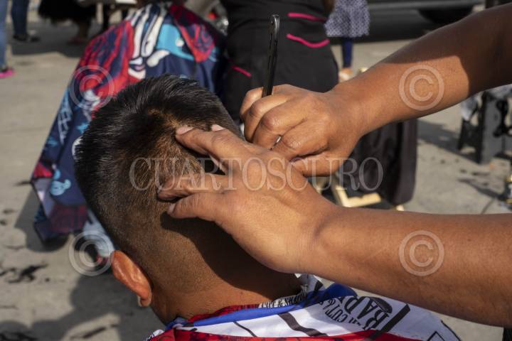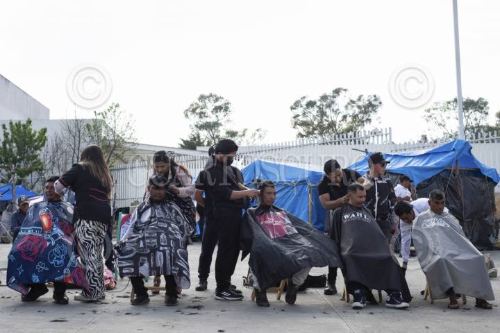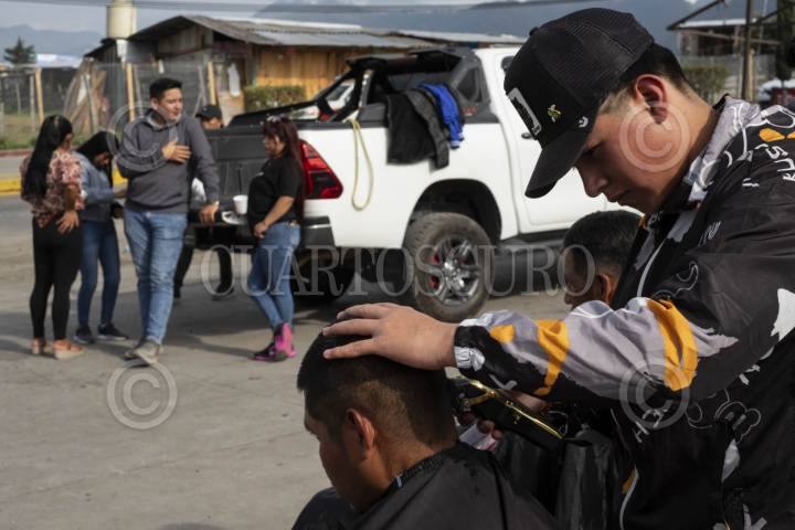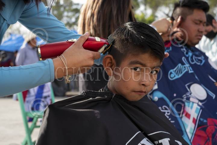 SAN CRISTÓBAL DE LAS CASAS, CHIAPAS, 06MAYO2025.- La Fundación Jk`anojot lleva acciones de altruismo como reunir a jóvenes estilistas y barberos de la región para ofrecer cortes gratuitos a los familiares de pacientes que se encuentran internados en el Hospital de las Culturas, también llevan ropa de medio uso que reúnen con anterioridad y la ofrecen a los familiares, quienes mayormente son originarios de otros municipios y permanecen por tiempo indefinido acampando en las inmediaciones del hospital. FOTO: ISABEL MATEOS HINOJOSA/CUARTOSCURO.COM