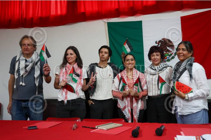 CIUDAD DE MÉXICO, 05AGOSTO2025.- Adrián Nares, integrante del Comité Organizador del Movimiento Global a Gaza; Dolores Pérez Lazcarro, integrante de Global Movement to Gaza; y Patricia Luévano, coordinadora internacional del Movimiento Global a Gaza, ofrecieron una rueda de prensa para hablar sobre la iniciativa humanitaria de llevar ayuda a la Franja de Gaza en doce embarcaciones, y convocaron a la sociedad civil a sumarse a este esfuerzo ya que señalaron que hay miles de niños con peligro de morir de hambre. También invitaron a ciudadanos que estén interesados en formar parte de las flotillas se pueden inscribir en las cuentas oficiales del movimiento. Dieron a conocer que le delegación mexicana está conformada por activistas, periodistas, artistas, médicos, estudiantes y voluntarios, esto durante el encuentro con medios de comunicación y gente interesa en el tema que se llevó a cabo en el Club de Periodistas. FOTO: MOISÉS PABLO/CUARTOSCURO.COM