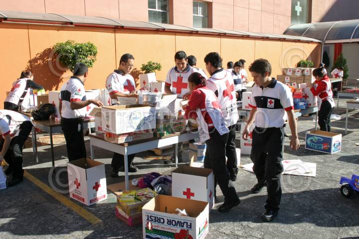 MÉXICO, D.F., 14ENERO2010.- Cientos de personas acuden al centro de acopio que se ubica en la sede la Cruz Roja en donde llevan víveres y ayuda paraa damnificados del terremoto de 7 grados en la escala de Richter que azoto este país. FOTO: RODOLFO ANGULO/CUARTOSCURO.COM