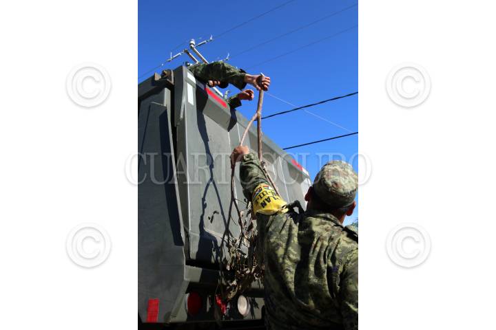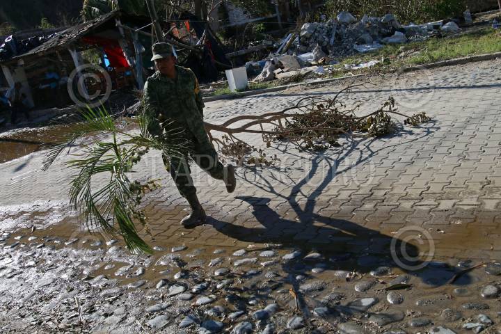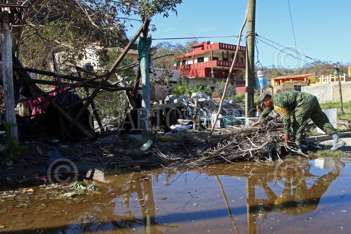CIHUATLÁN, JALISCO. 25OCTUBRE15.-Personal Militar asignado al Plan DN-III ayudan en las labores de limpieza de los municipios afectados por el Huracán Patricia que azoto la Costa Alegre del estado el pasado viernes. FOTO: FERNANDO CARRANZA GARCIA / CUARTOSCURO.COM