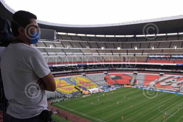 MÉXICO D.F., 26ABRIL2009.- A puerta cerrada se jugo hoy el futbol en el estadio Azteca debido a la epidemia de influenza que azota al DF, Los Tecos vencieron al América quedando un marcador final 2-0 FOTO: SÁSHENKA GUTIÉRREZ/CUARTOSCURO.COM