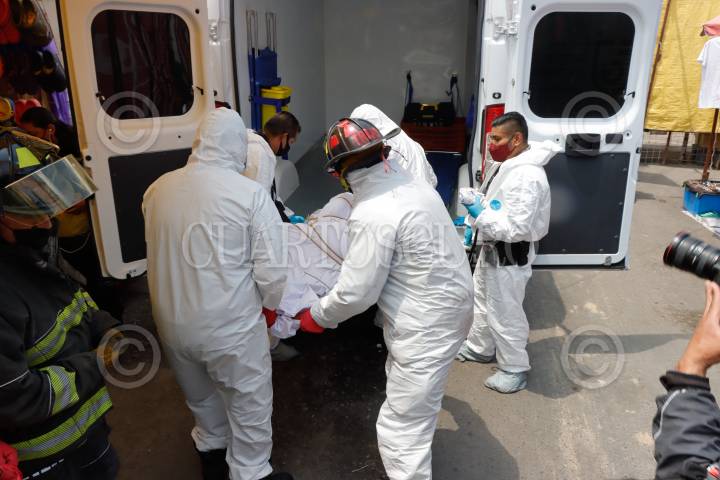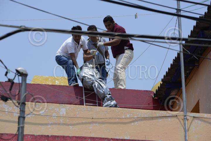 Un hombre fue hallado muerto y embolsado en la azotea de la Unidad Habitacional Estanquillo, en el Barrio de Tepito. Peritos maniobraron para recuperar los restos.