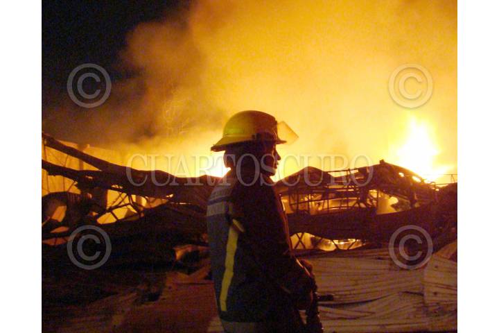 MÈXICO, D.F., 15MAYO2008.-Esta madrugada se registrò un incendio en una fabrica de hules espuma y plastico en la esquina de la calle Abraham Gonzalez y Benito Juarez en la Colonia Ejido de Santa Maria Aztahuacan, Iztapalapa. FOTO:LUZ ACEVEDO/CUARTOSCURO.COM