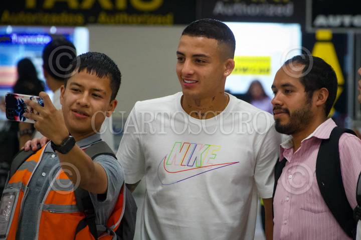 Kevin Castaño, jugador colombiano, durante su llegada a la Ciudad de México para reportarse con el equipo Cruz Azul.