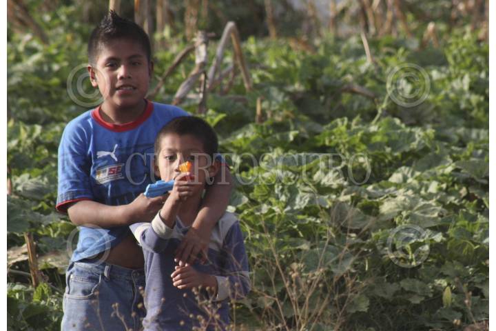 SAN MARTIN MEXICAPAN, OAXACA, 01FEBRERO2012.- Un grupo de niños que habitan en la agencia municipal, juegan Policías y ladrones entre los terrenos baldíos y calles sin pavimentar. FOTO: ARTURO PÉREZ ALFONSO/CUARTOSCURO.COM