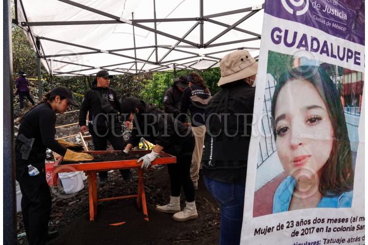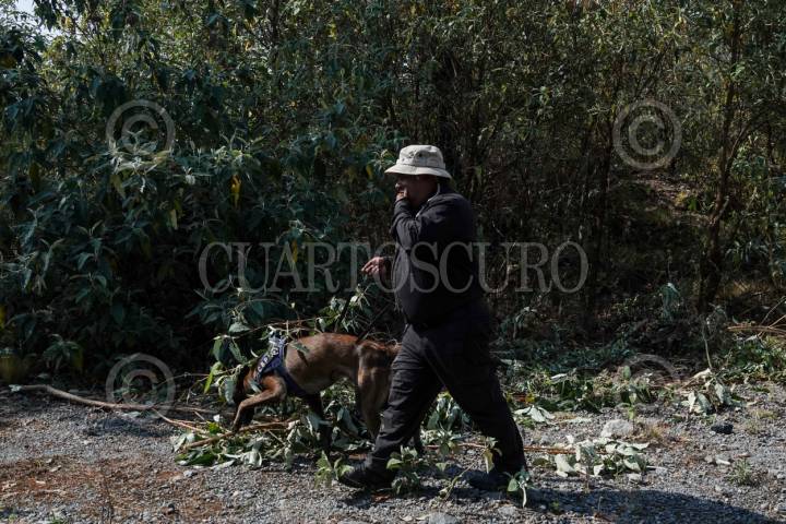 CIUDAD DE MÉXICO, 23ABRIL2024.- María del Carmen Volante, madre de G Guadalupe Pamela Gallardo Volante (desaparecida en 2017 en la carretera Picacho-Ajusco), encabezó por segundo día consecutivo la jornada de búsqueda de su hija en uno de los puntos del Ajusco, donde anteriormente ya fueron hallados restos oseos. En esta ocasión fue encontrado un hueso de mano por parte de elementos de la Fiscalía General de Justicia de la Ciudad de México (FGJCDMX) que ya acordonaron la zona. El próximo jueves 25 y viernes 25 de abril, la familia regresará para atender las labores con la esperanza de encontrar más indicios. FOTO: GALO CAÑAS/CUARTOSCURO.COM