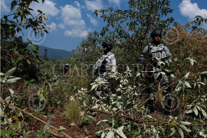 La Comisión Nacional de Búsqueda de Personas Desaparecidas, la FGR y la FGEM realizan una búsqueda de fosas clandestinas en la sierra-costa de Michoacán, el primer día localizaron un falange.
