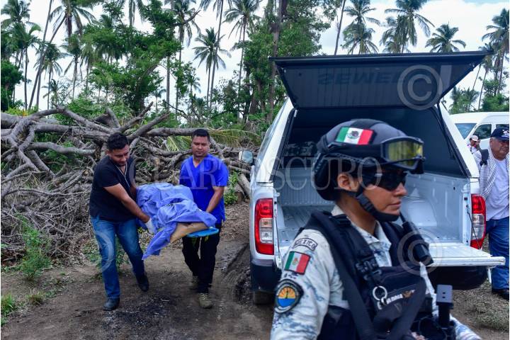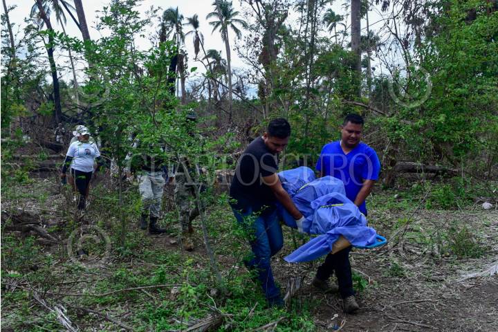 ACAPULCO, GUERRERO, 21JUNIO2024.- Integrantes del colectivo de búsqueda de personas desaparecidas "Fe y Esperanzas de Encontrarlos Guerrero" realizaron el hallazgo de un cuerpo dentro de una fosa clandestina en una huerta en la comunidad de El Cayaco en la zona rural de Acapulco. La identificación se realizó alrededor de las 10 de la mañana con el apoyo de la Unida Canina de la Fiscalía del Estado de Guerrero y de la Comisión Estatal de Búsqueda de Personas, después de las 2 de la tarde se hizo el levantamiento del cuerpo para ser trasladado a las instalaciones del Servicio Médico Forense. Hasta el momento no se ha podido precisar si se tratan de los restos de un hombre o de una mujer. FOTO: CARLOS CARBAJAL/CUARTOSCURO.COM