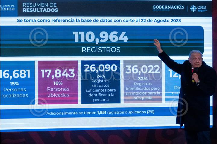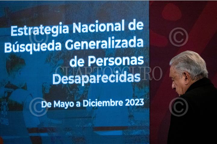 CIUDAD DE MÉXICO, 27DICIEMBRE2023.- Andrés Manuel López Obrador, presidente de México, durante la conferencia matutina desde Palacio Nacional en que se presentó la sección “Quién es quién en las mentiras de la semana”, así como detalles sobre la Estrategia Nacional de Búsqueda Generalizada. FOTO: GALO CAÑAS/CUARTOSCURO.COM