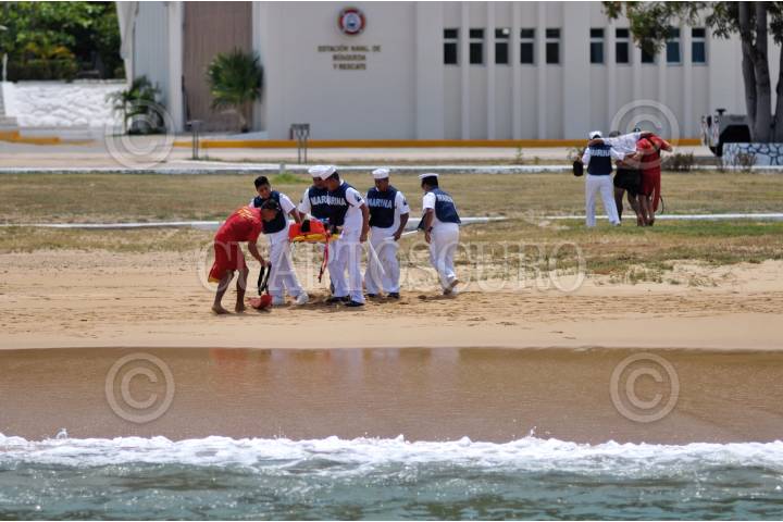 ACAPULCO, GUERRERO, 28MARZO2015.- Dentro de la Octava Región Naval de la Marina Armada de México, se encuentra la Estación Naval de Búsqueda y Rescate (ENSAR) la cual brinda atención para responder ante cualquier situación de peligro y auxilio marítimo. La estación cuenta con buques, embarcaciones, aeronaves y marinos que son capacitados en las instalaciones para resolver cualquier situación de peligro. Ejercicio de rescate por parte de los salvavidas. FOTO: DIEGO SIMÓN SÁNCHEZ /CUARTOSCURO.COM
