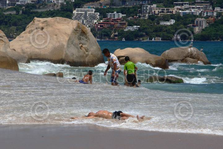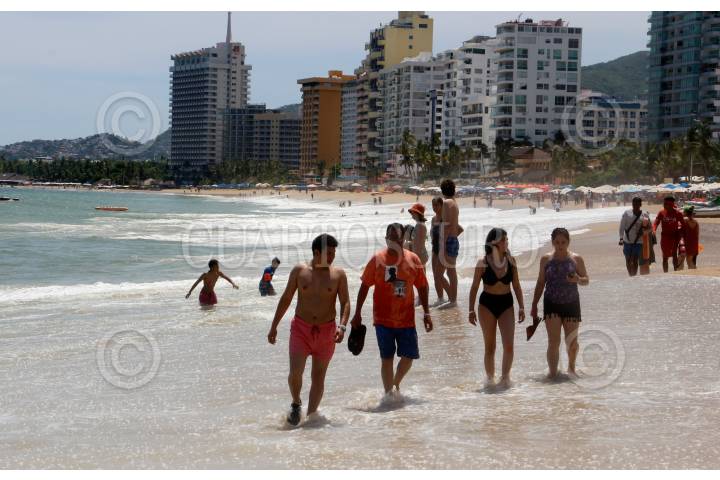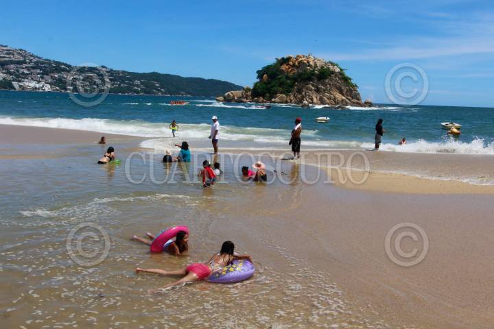 Bañistas en las playas de las bahía de Acapulco, la secretaria de turismo del estado informó que el puerto se encuentra el día de hoy a un 37.6% de ocupación hotelera.