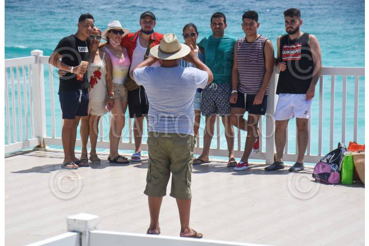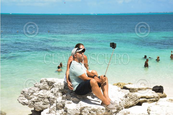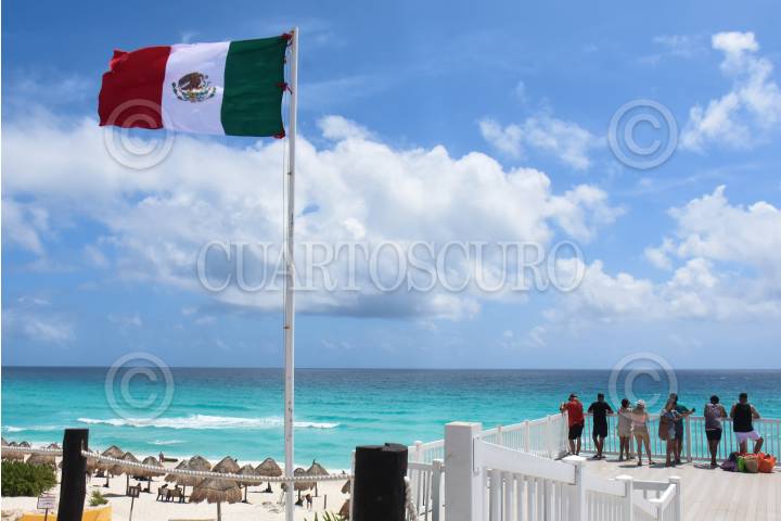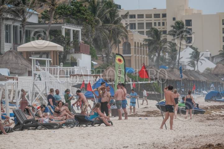 Vacacionistas disfrutan del Sol en la Playa Las Tortugas en Cancún Quintana Roo