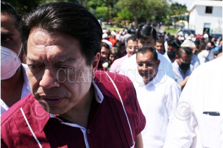 Mario Delgado Carrillo al final de la toma de protesta de comites de defensa de la 4T en Cuautla, Morelos.