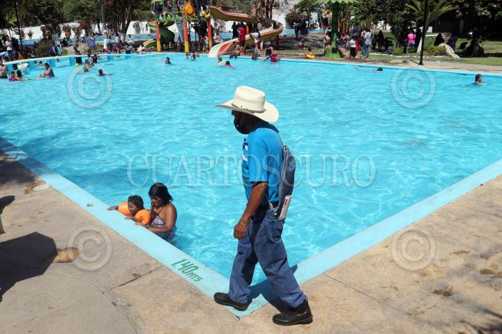 El calor que se ha sentido en la entidad ha llevado a las personas a visitar los balnearios para refrescarse, como en la imagen en el balnerario el Almeal.