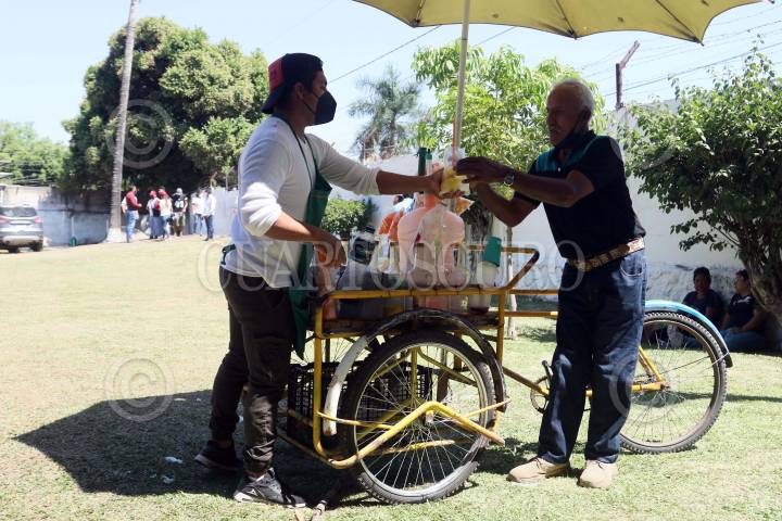 Un joven prepara un raspado de hielo en el balneario El Almeal, altas temperaturas se han sentido en al entidad.
