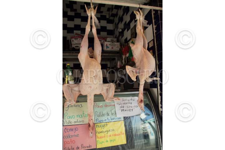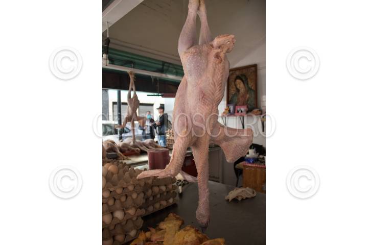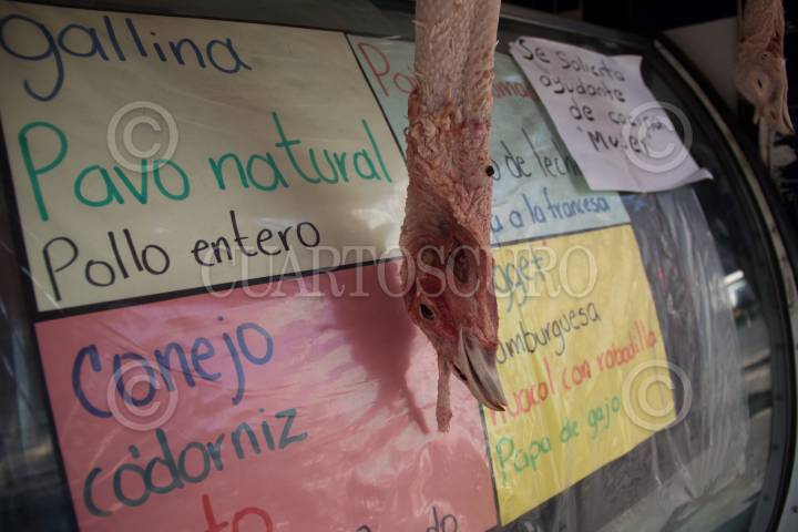 En el mercado de la Merced se ofrece espinazo, bisteck y lomo de cerdo para preparar la cena de año nuevo.