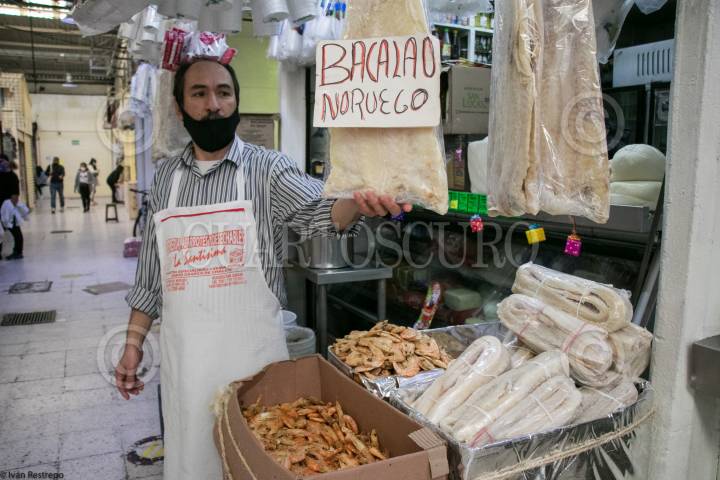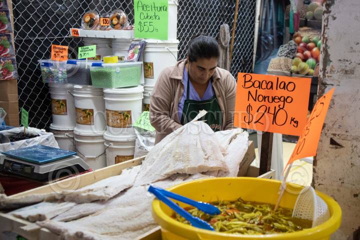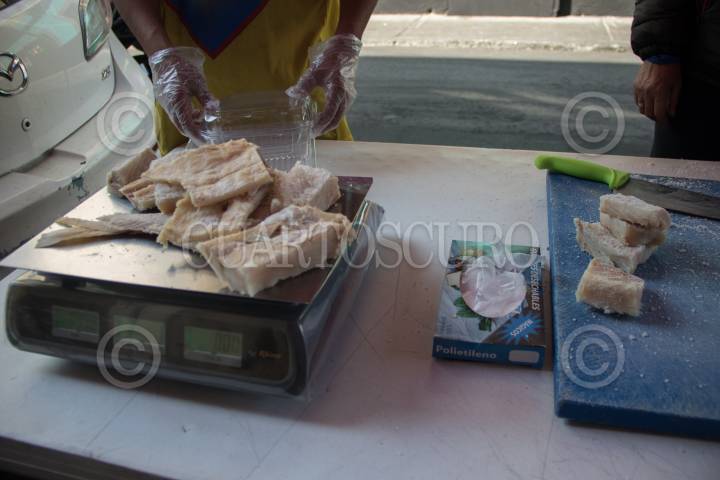 CIUDAD DE MÉXICO, 21DICIEMBRE2023. Con motivo de la cena navideña se ofrece Bacalao en distintos mercados de la capital del país. FOTO: EDGAR NEGRETE LIRA/CUARTOSCURO.COM