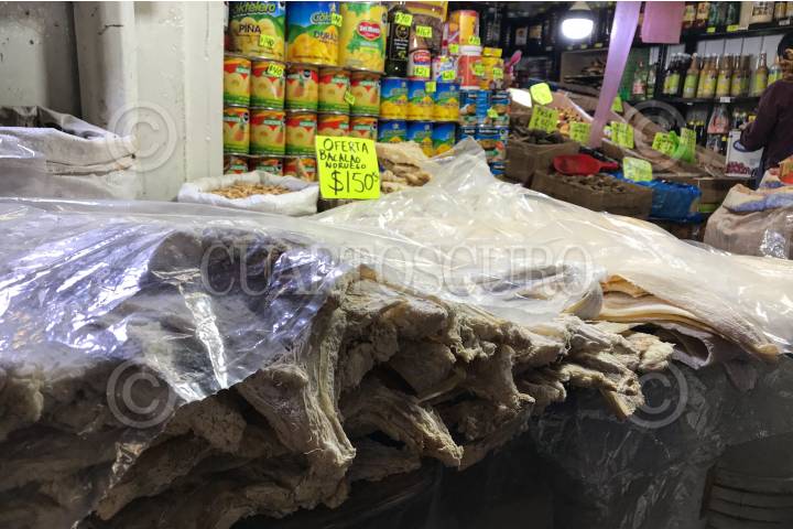 Carne de res y cerdo, y el tradicional bacalao es lo que busca más en estas fechas las personas para la preparación de la cena navideña, los locatarios reportan bajas ventas ante la cancelación de reuniones grandes por la contingencia por COVID-19.