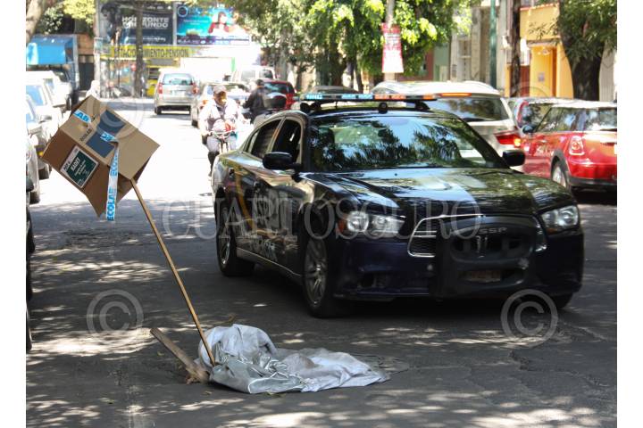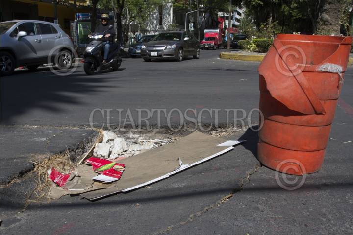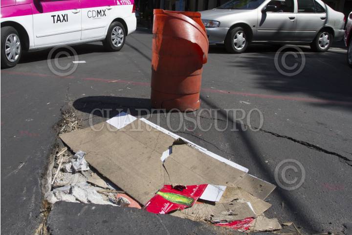 MÉXICO, D.F., 21ENERO2016.- Hundimiento en el pavimento sobre la calle Michoacán en la colonia Condesa. FOTO: ISAAC ESQUIVEL /CUARTOSCURO.COM