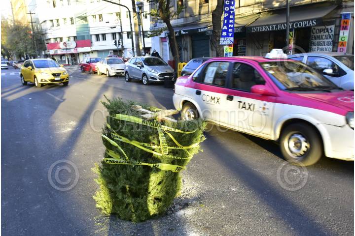 CIUDAD DE MÉXICO, 11ENERO2017.- Un árbol de navidad sirve como tapa en un hoyo en las calles doctor Lucio y calle de doctor La vista, en la colonia Doctores. FOTO: ARMANDO MONROY /CUARTOSCURO.COM