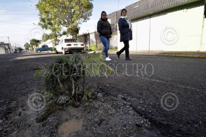 TOLUCA, ESTADO DE MÉXICO, 20AGOSTO2018.- Vecinos de la Colonia Ciprés han optado por colocar árboles en los baches de la zona, tal es el caso de la calle Carmen Serdán, que a media calle fue colocado el pequeño árbol. FOTO: ARTEMIO GUERRA BAZ /CUARTOSCURO.COM