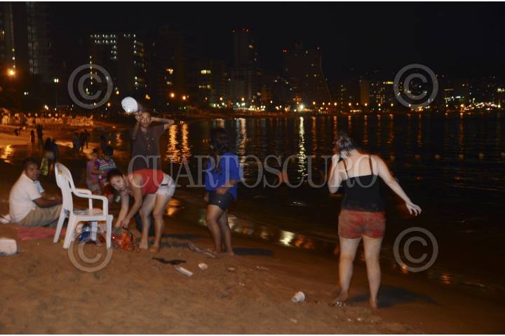 ACAPULCO, GUERRERO, 01ENERO2014.- Miles de turistas acudieron a las playas a presenciar el espectáculo de fuegos artificiales en la bahía, que se prolongó durante ocho minutos. Muchos visitantes acamparon y pasaron la noche en la arena, donde cenaron con familiares en un ambiente festivo de familia y para recibir el Año Nuevo de 2014, donde algunos por la trasnochada quedaron en plena playa tirados. FOTO: BERNANDINO HERNÁNDEZ /CUARTOSCURO.COM