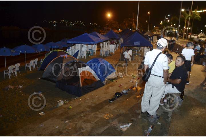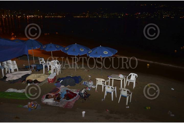 ACAPULCO, GUERRERO, 01ENERO2014.- Miles de turistas acudieron a las playas de Acapulco a presenciar el espectáculo de fuegos artificiales en la bahía, que se prolongó durante ocho minutos. Muchos visitantes acamparon y pasaron la noche en la arena, donde cenaron con familiares en un ambiente festivo de familia y para recibir el Año Nuevo de 2014 donde algunos por la trasnochada quedaron en plena playa tirados donde el puerto de Acapulco, alcanzo una ocupación hotelera de año nuevo en el puerto fue de 99 por ciento. En la zona Diamante fue de 99.5 por ciento; en la Dorada de 98.9 por ciento; y en la Tradicional de 98.5 por ciento. FOTO: BERNANDINO HERNÁNDEZ /CUARTOSCURO.COM