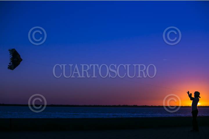NAVOLATO, SINALOA, 20DICIEMBRE2016.- Un niño aprovecha los últimos rayos de sol para volar su papalote en el malecón de la bahía de Altata en estas vacaciones navideñas. FOTO: RASHIDE FRIAS /CUARTOSCURO.COM