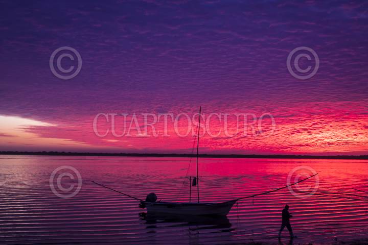 NAVOLATO, SINALOA, 30ENERO2016.- Pescador de la bahía de Altata revisa su bote después de un largo día de trabajo, de fondo, un espectacular atardecer. FOTO: RASHIDE FRIAS /CUARTOSCURO.COM