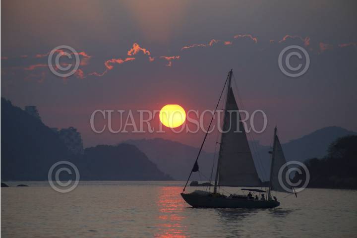 Amanecer en la bahía de Acapulco, en dónde ayer se conmemoraron los 500 años de la llegada del conquistador Francisco Álvarez Chico el 13 de diciembre de 1521, quién sería en el primer español en llegar a la bahía, la cual ya estaba habitada por los indígenas Yopes.