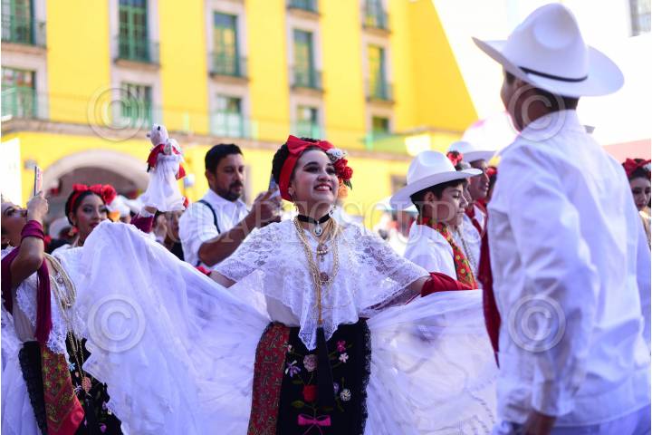 XALAPA, VERACRUZ, 24NOVIEMBRE2024.- Más de 2700 bailadoras y bailadores de varios municipios del estado se reunieron para la séptima edición del reto La Bamba para romper su propio récord Guinness. FOTO: YERANIA ROLÓN/CUARTOSCURO.COM