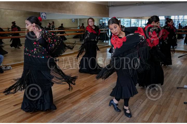 CIUDAD DE MÉXICO, 01AGO2024.- Se llevó a cabo el ensayo general de compañía de Danza y Música Flamenca “Caña y Candela Pura” en la Escuela Nacional de Danza Folklóricas dirigida por Lourdes Lecona. El espectáculo se estrenará el próximo martes 6 de agosto en Bellas Artes. FOTO: ALICE MORITZ/CUARTOSCURO.COM