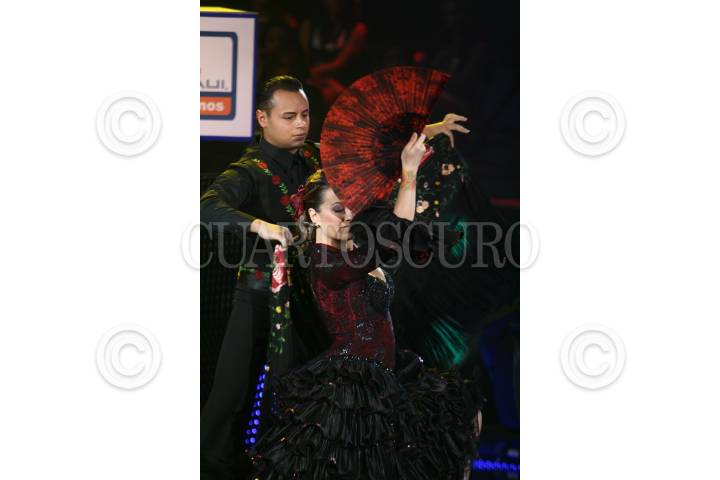 MÉXICO, D.F., 05OCTUBRE2008.- La cantante Gloria Trevi acompañada por su soñador bailan durante la emision del reality show bailando y cantando por un sueño sangre por sangre. FOTO: SÁSHENKA GUTIÉRREZ/CUARTOSCURO.COM