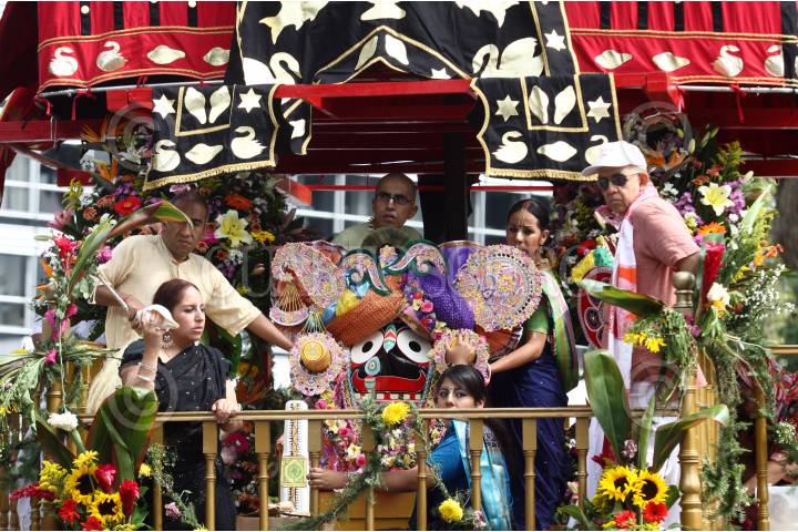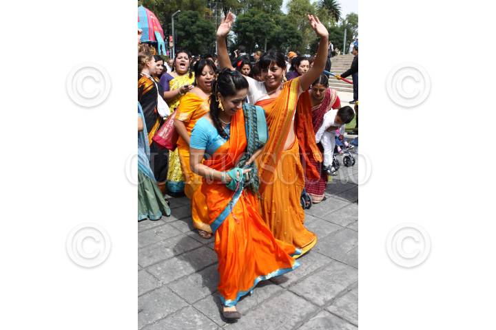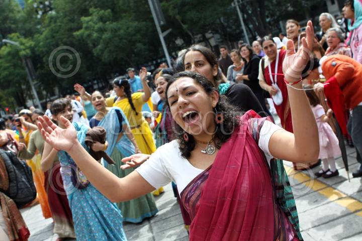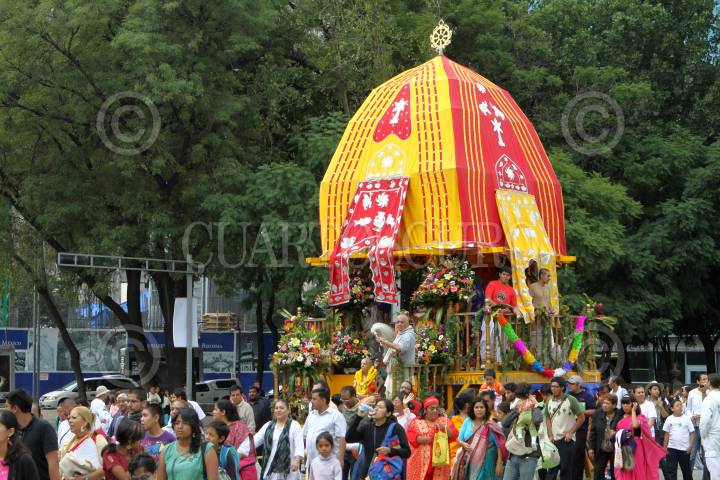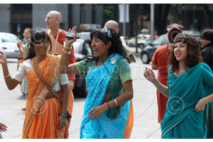 MÉXICO, D.F., 25SEPTIEMBRE2010.- Miembros de la comunidad Krishna cantan y bailan Mantras acompañados por sus deidades en una procesión que partio de la glorieta del Angel de la Independencia hacia el Parque España en donde celebraron un festival. FOTO: RODOLFO ANGULO/CUARTOSCURO.COM