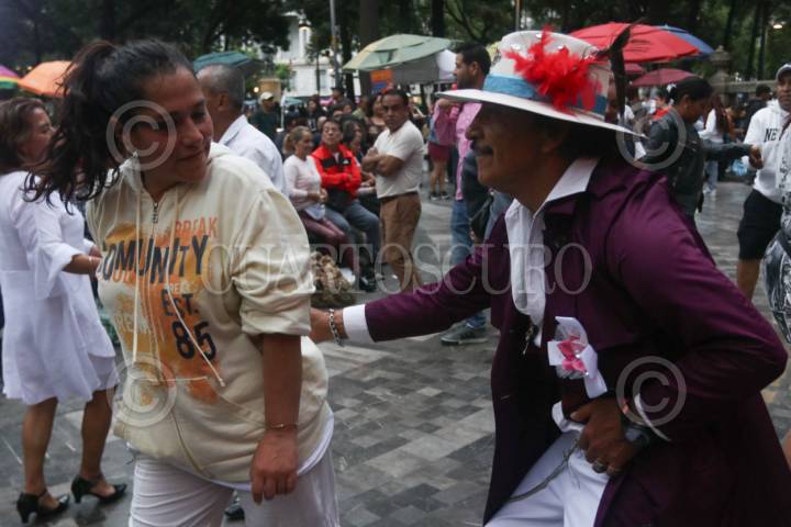 CIUDAD DE MÉXICO, 27JULIO2025.- Una pareja acudió a bailar salsa durante el Domingo de Danzón en la Alameda Central. FOTO: GRACIELA LÓPEZ/CUARTOSCURO.COM