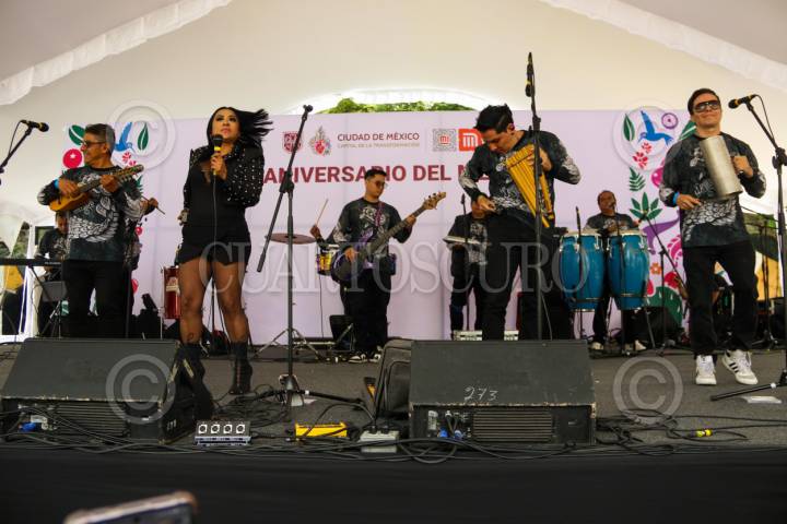 CIUDAD DE MÉXICO. 04SEPTIEMBRE2025.- Bailongo por el 56 aniversario del sistema de transporte colectivo Metro, en la glorieta de Insurgentes. El grupo Llayras amenizo el evento. FOTO: VICTORIA VALTIERRA/CUARTOSCURO.COM